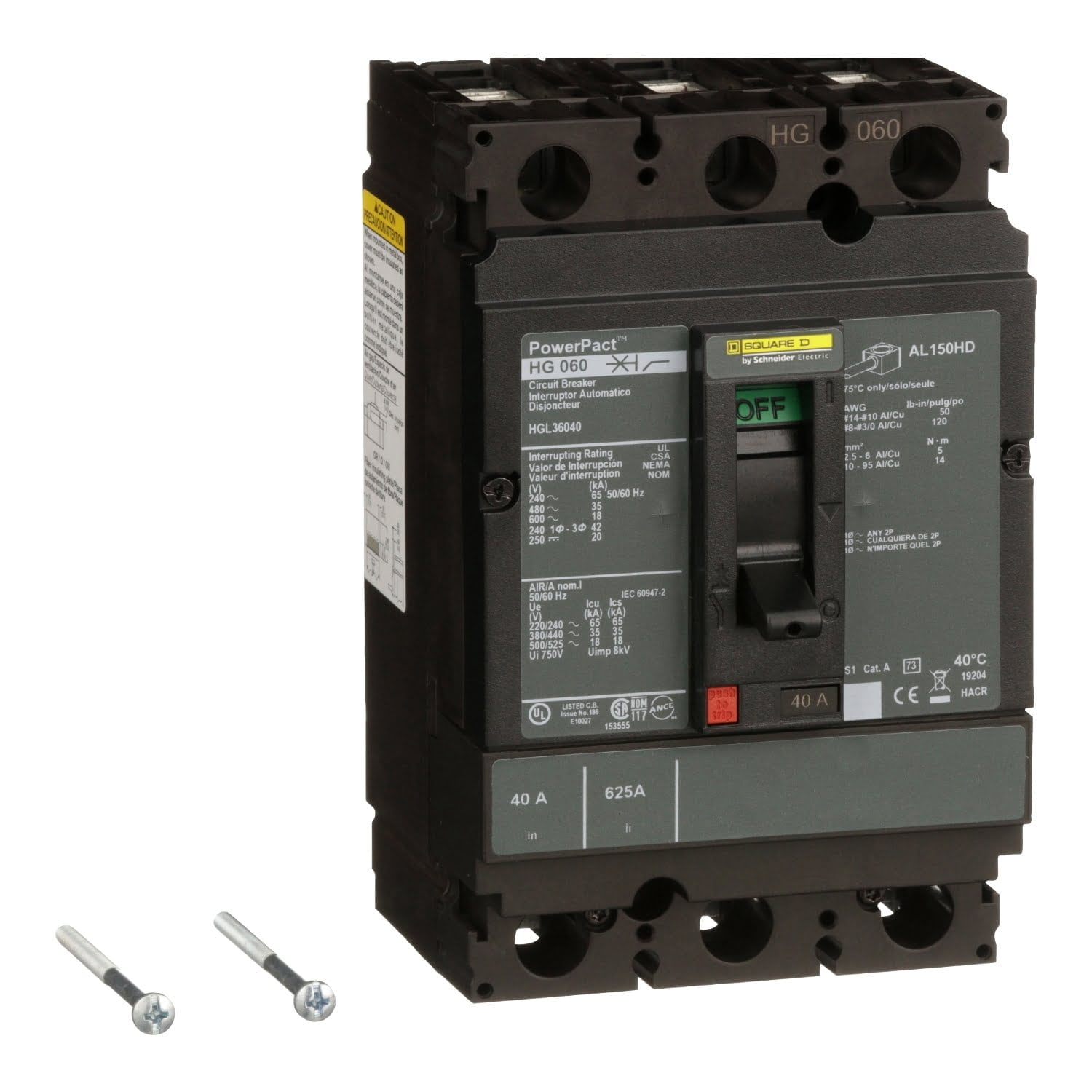 HJL36040, INT. CAJA MOLDEADA POWERPACT H TRIF. FIJO 40A, 100KA/240VAC, 65KA/480VAC